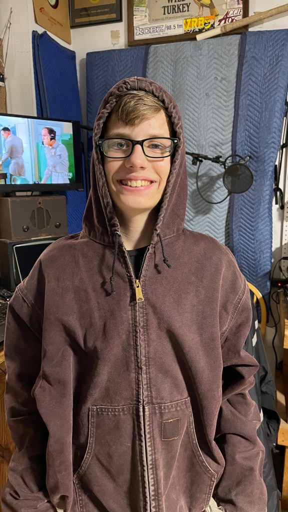 The small shelter in front of his Heights-area home was built in-part by his dad, who’s hobby as a woodworker shows through the craftsmanship. It even has a retractable garage door.