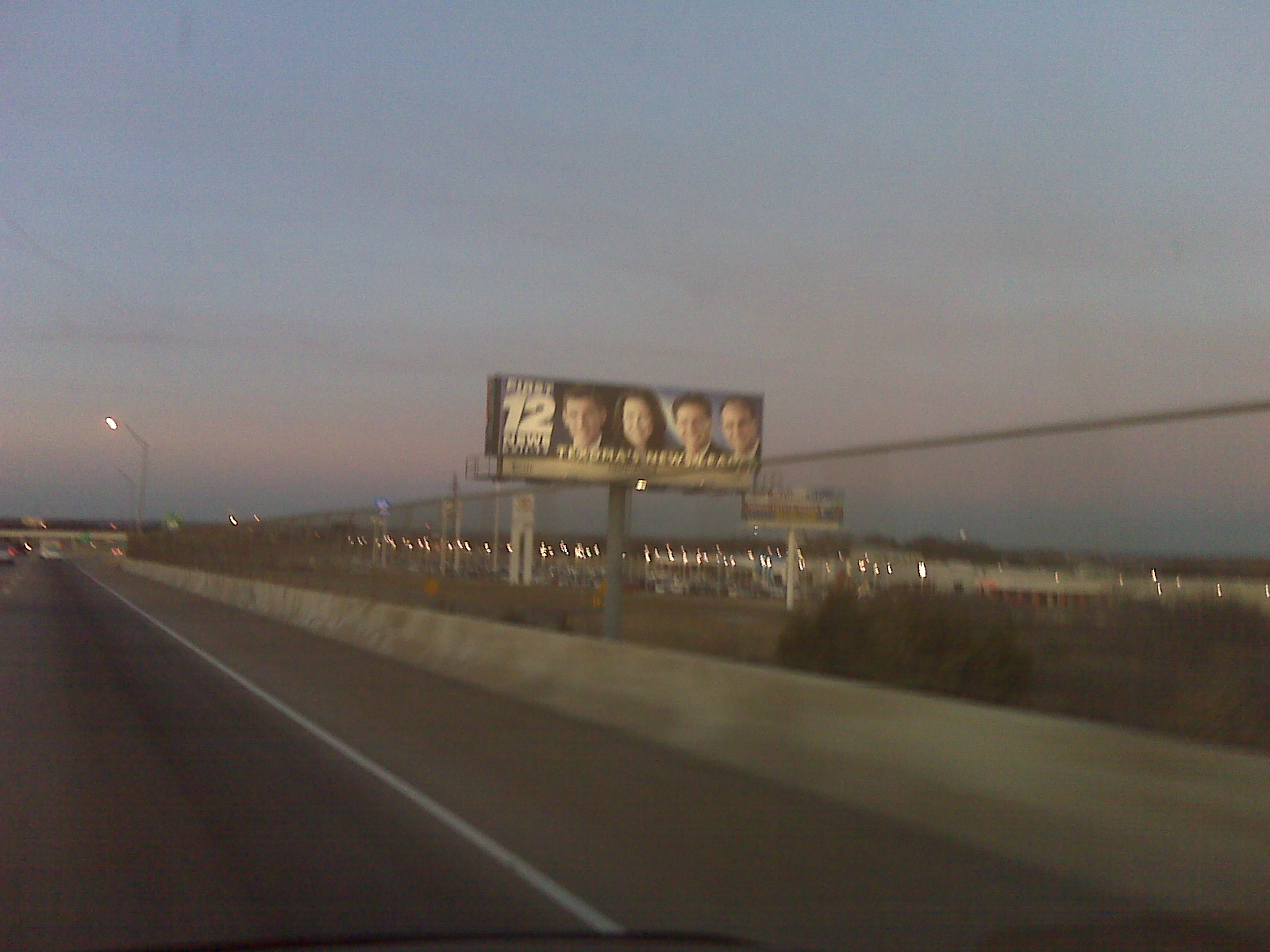 This is a look at one of those gargantuan roadside signs that clutter the cornfields and cow pastures across the land. It’s of interest to me, since I’m on of the 4 faces plastered up there like some kind of Texoma Mt. Rushmore. This particular billboard is on Highway 75 in Denison.