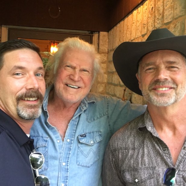 As I was headed out for the day, I was halfway across the parking lot walking toward my truck when I saw this tall silhouette figure in the bright sun wearing a Stetson and, without thinking, I said as I walked toward the man, “Now anybody that ever worked with Jimmy Best and Denver Pyle, I just have to hug their neck.”