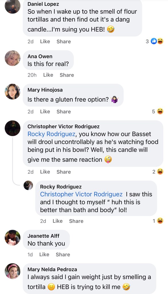 That’s slightly more than the other oddity on the market. The $12 H-E-B butter tortilla scented candle is on sale now at the Texas grocer.