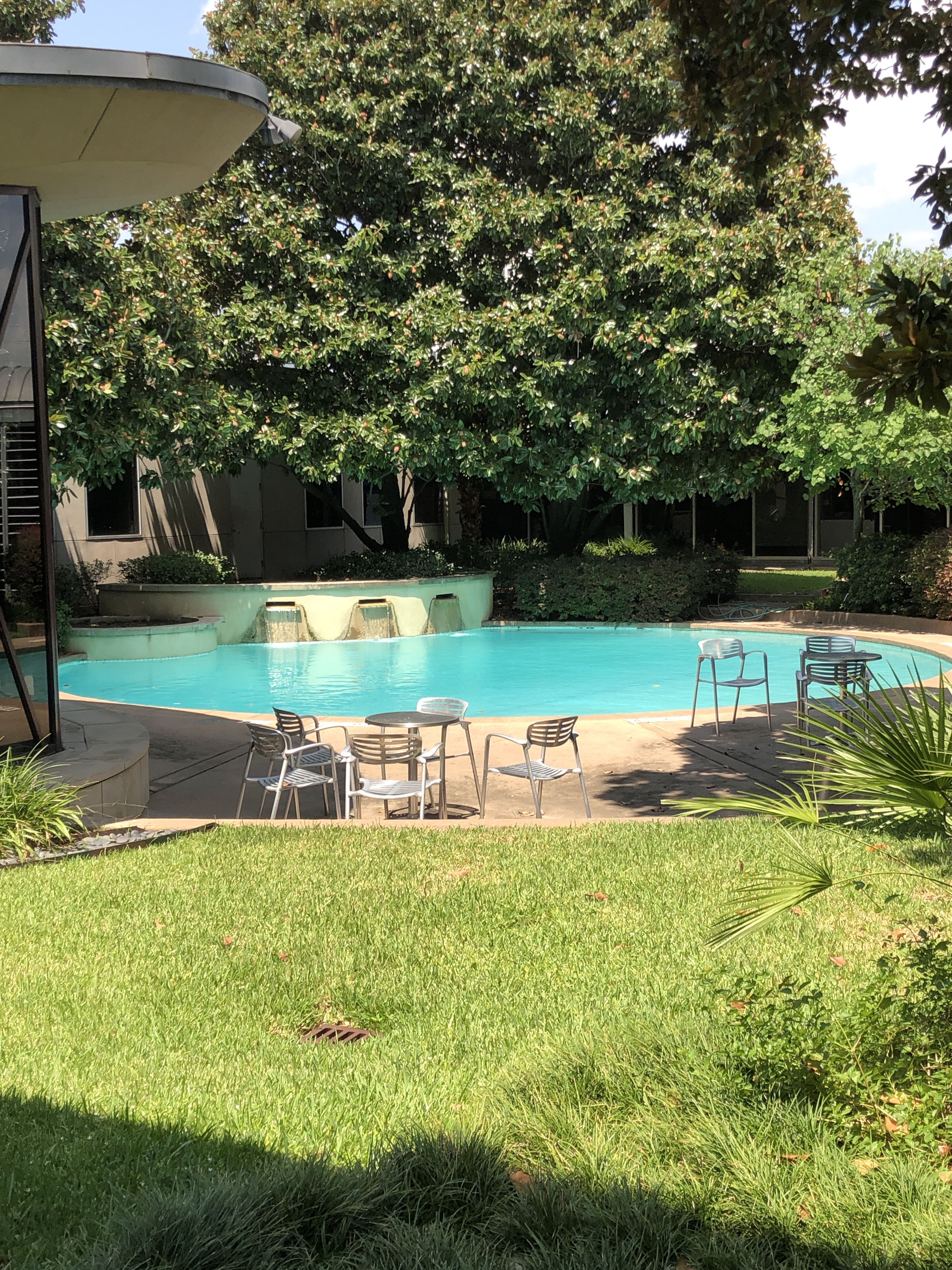 No, they don’t allow swimming at work. It’s exclusively a visual feature these days. Once upon a time though, I’m told it was the hangout spot for employees.