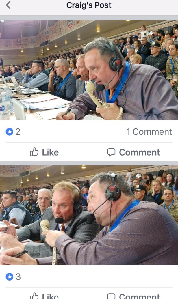 That’s University of Texas play-by-play commentator Craig Way. It happened at Fort Bliss at a basketball game. The internet service went out and there was no cell service.