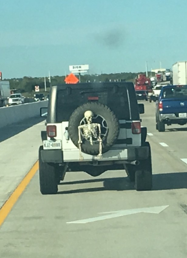 If you weren’t sure that Halloween was approaching, the driver of this Jeep is on a mission to remedy that.