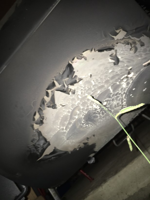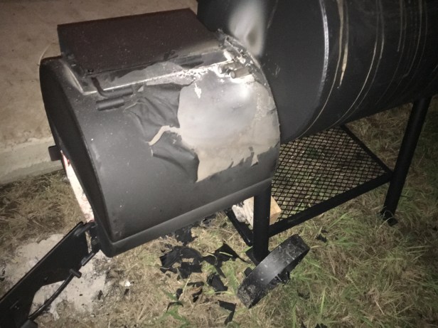 Seasoning your new grill can enlighten you on the lessons of temperature ratings. Even for devices called fire boxes. (You can’t burn too hot in this one.) We’ll be buying some high temperature paint today.