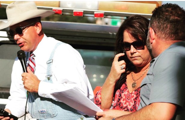 Molly Blackmon and Kyle Barrett helping out with the Oktoberfest Parade PA duties as we call out the floats, the sponsors, and all the people we could as they pass in front of the viewing stand along Highway 82. The viewing stand was actually Benji Barrett’s flatbed truck from Barrett’s Auto Sales.