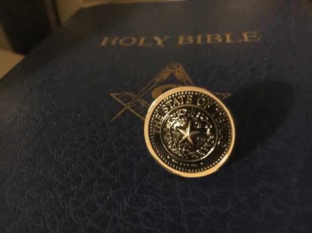This cuff link is missing its partner, so it’s retired to the top of my wardrobe. It’s a fine piece with the seal of Texas. I’ve run across many like it, but none just like it. Yes, I’m going to be that particular.