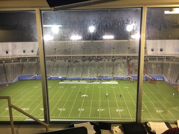 We sat for 3 hours in the historic Cotton Bowl waiting on a high school football game to start. Lightning continually delayed kickoff. Once the game got underway, it was a mere 15 minutes before lightning struck again within 10 miles. The game was cancelled. So that’s not really odd. Just unplanned.
