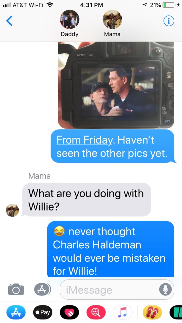 That’s my Daddy and me having a conversation. It’s worthy of a frame just the way it is.