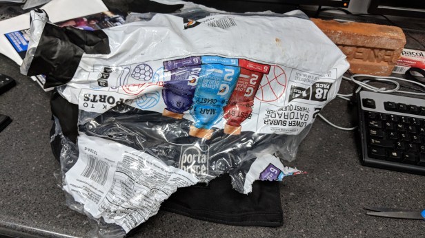 But our friend Darryl down in Bryan has a better solution than the simple trash bag. Why look here. It’s a form-fitted Gatorade wrapper with tape.